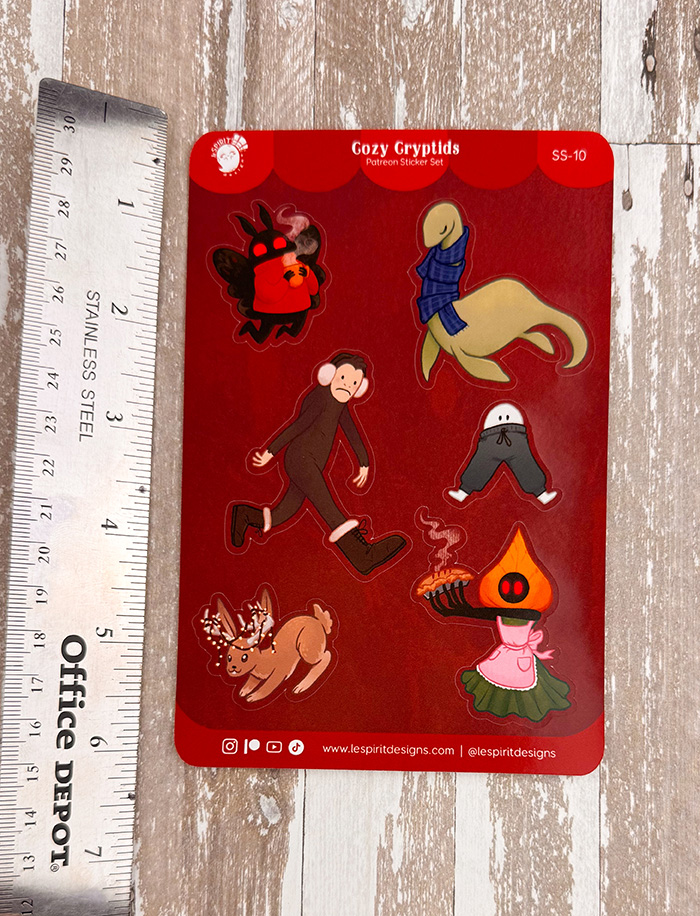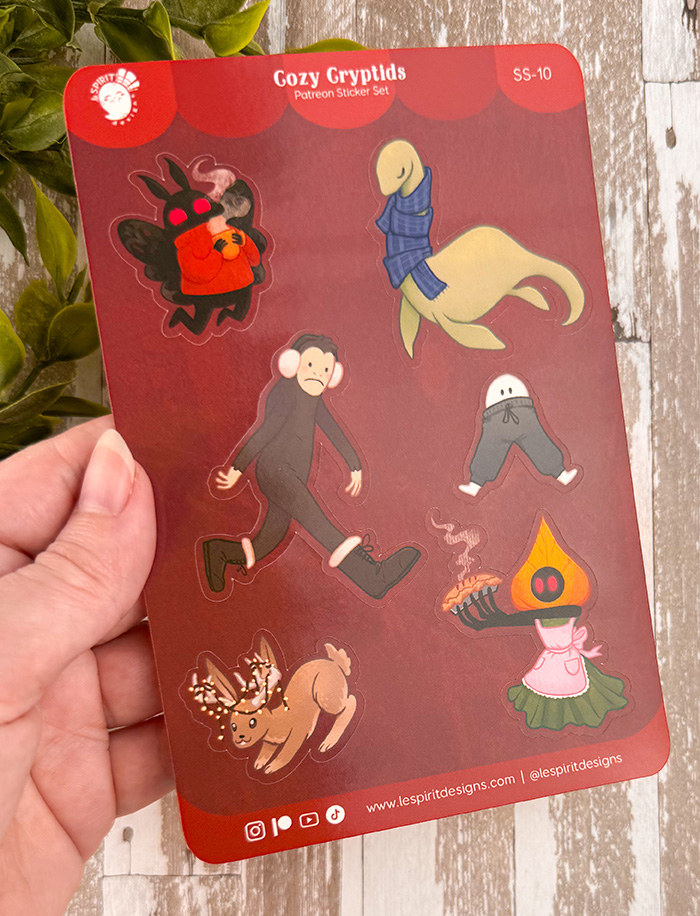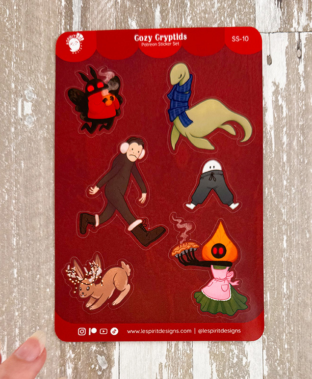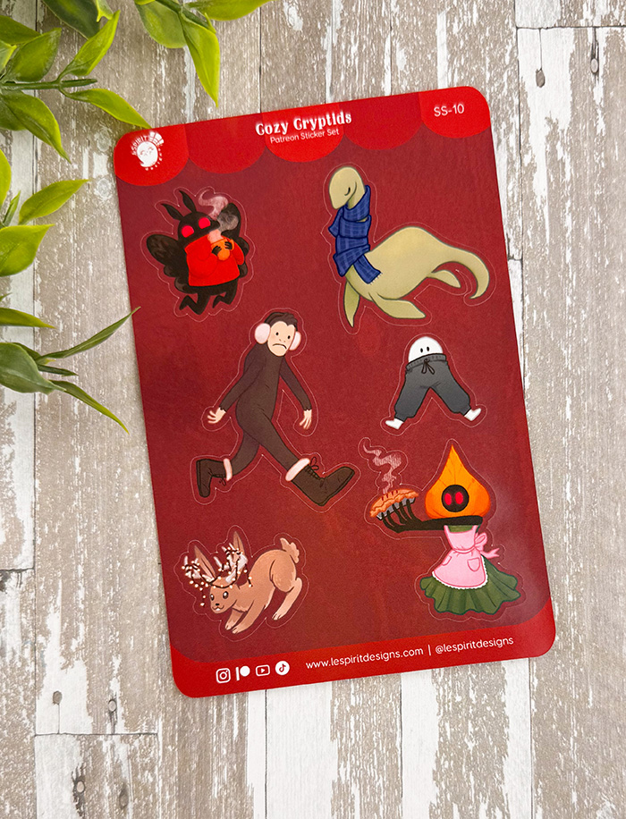 Same stickers, with a new layout! All the cryptids are cozy and ready for the cold-weather months!